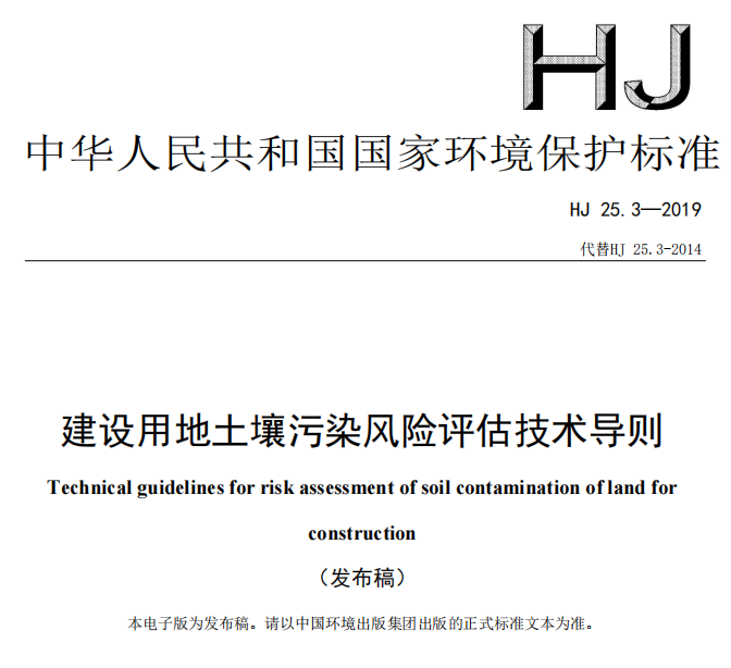 自以上标准实施之日起,《场地环境调查技术导则》(HJ 25.1-2014)、《场地环境监测技术导则》(HJ 25.2-2014)、《污染场地风险评估技术导则》(HJ 25.3-2014)、《污染场地土壤修复技术导则》(HJ 25.4-2014)和《污染场地术语》(HJ 682-2014)废止。